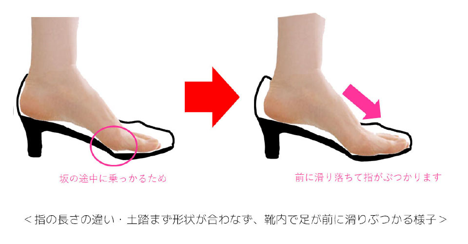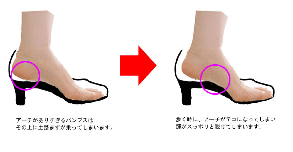 ハイヒールやパンプスは、足の甲を靴紐で抑え込むことができないため、