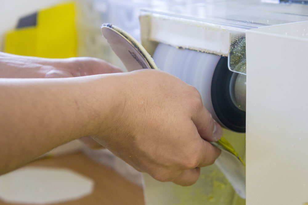1~3の工程を加味しながら、使用するパットを選択し、グラインダーで微調整を行ないます。