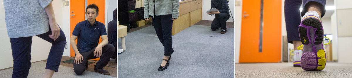 歩行を観察することでバランスの崩れを見極め、選択するパットを決定します