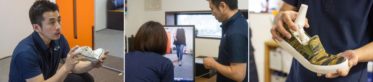 足の計測から適正サイズを提示し、フットプリントで荷重状況を確認します。